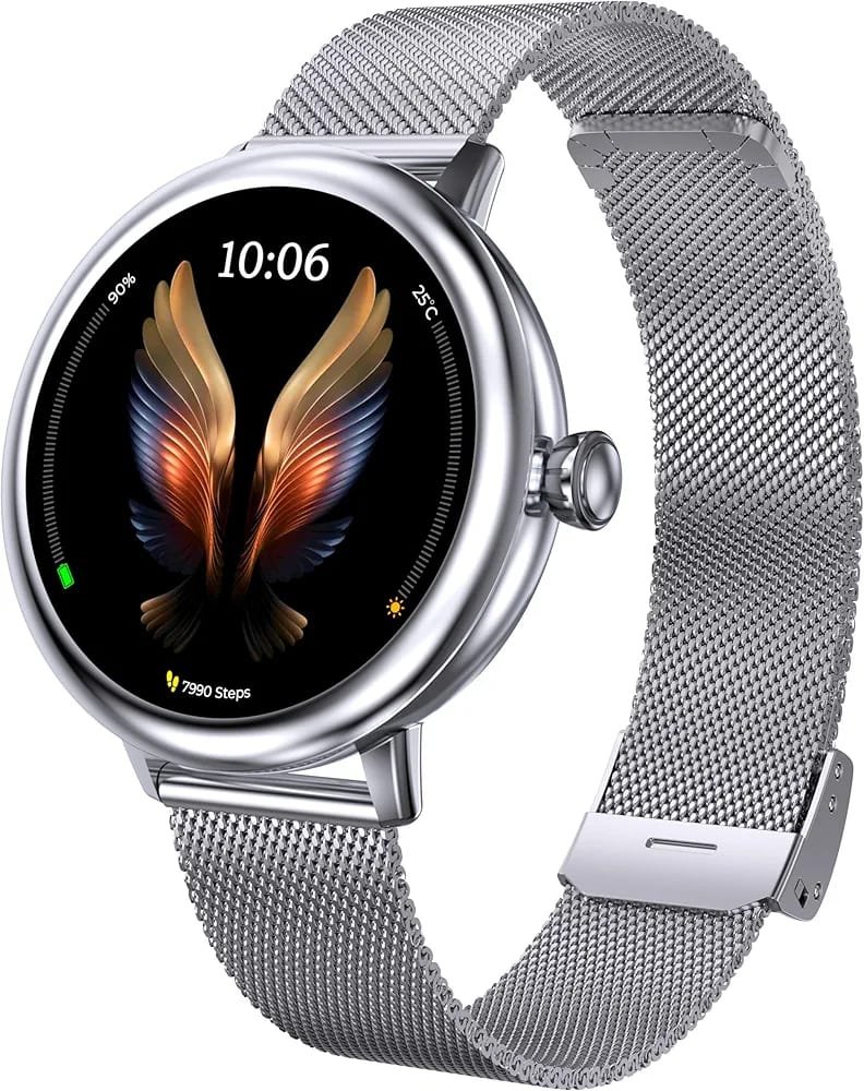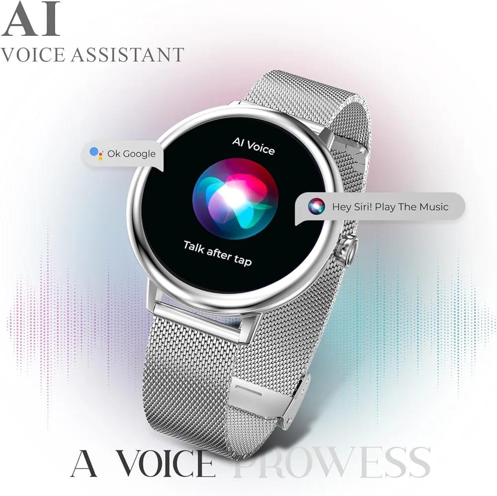 1.2 inch Super AMOLED Smartwatch: The beatXP Eva metallic smart watch is the epitome of chic and refined design, featuring a stunning 1.2 inch AMOLED display with a resolution of 360*360px.Advanced Bluetooth Calling smartwatch.24/7 Health Tracking with Smart Menstrual Alerts.Menstrual Cycle Tracking.Rotary Multifunctional Crown with Metal Body